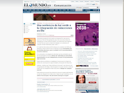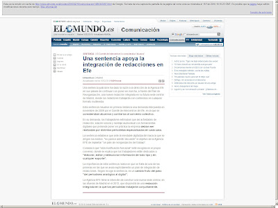 - 1) Lunes, 15/02/2010, 15.01 h. – Publico la siguiente nota en e-periodistas: Una sentencia avala la futura integración de redacciones de la Agencia EFE.
